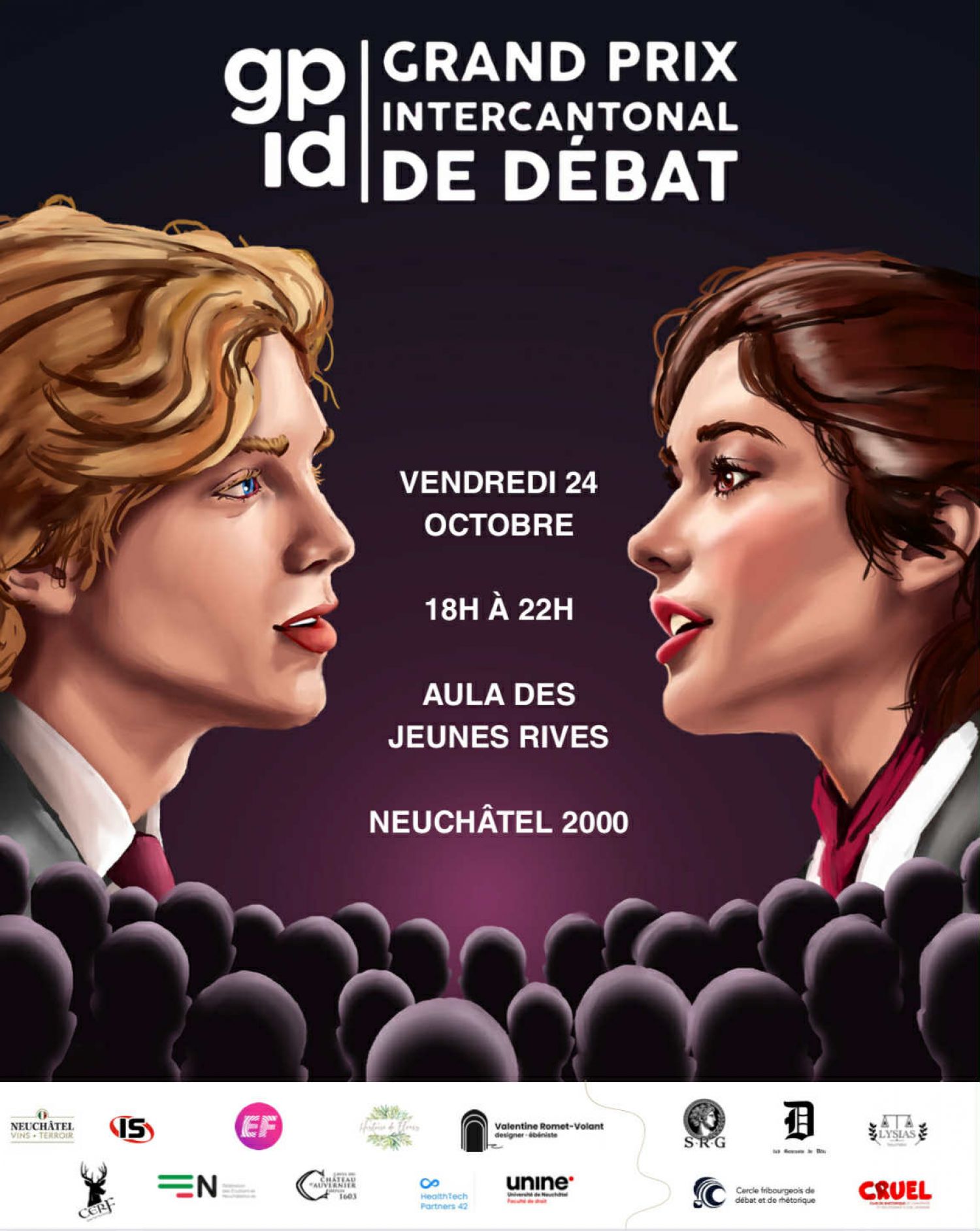 Bienvenue au GPID, le concours d’art oratoire qui oppose 4 cantons romands avec 2 candidat·es chacun ! Ce soir, deux épreuves les attendent : un débat préparé avec un droit de réponse, puis une conférence de presse improvisée avec 3 questions de journalistes. Nos orateurs seront jugés sur leur clarté, leur répartie et leur créativité.