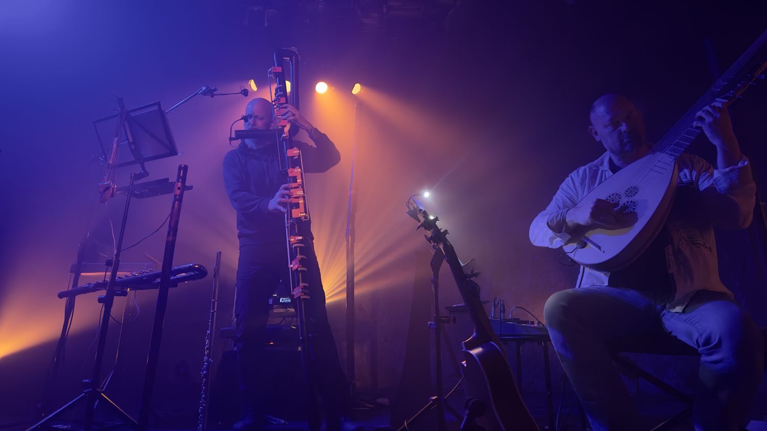 Vous découvrirez une palette d’instruments uniques. Olivier Nussbaum vous transportera avec son archiluth, un instrument à cordes pincées au son riche et profond, créant un écrin d’harmonies subtiles et délicates. Julien Monti, quant à lui, vous charmera avec ses multiples flûtes traversières, ethniques et contrebasses, offrant des sons graves et envoûtants qui installent une atmosphère magique et mystique. Enfin, l’artiste égyptien Ihab Radwan vous captivera avec son oud, dont les mélodies, empreintes de tradition et d’émotion, tissent un lien direct avec la mémoire et la poésie du monde arabe.