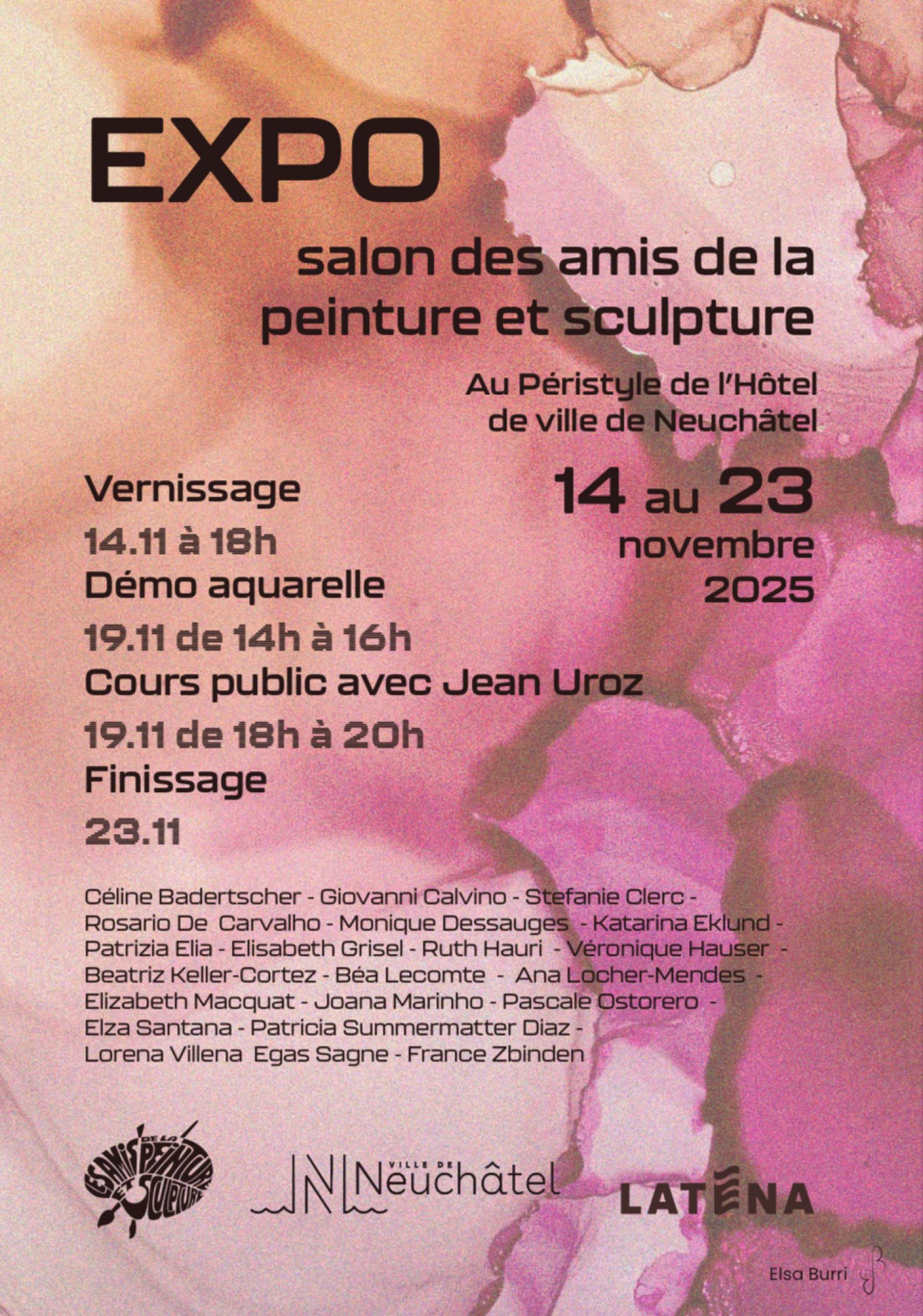 L’exposition des Amis de la Peinture et Sculpture se tiendra au magnifique Péristyle de l'Hôtel de Ville de Neuchâtel.