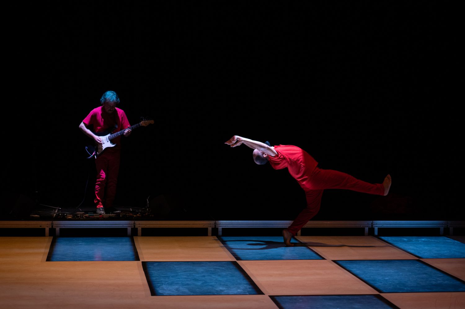 Hors du monde est ce duo de musicien-danseur qui explore le thème de l’épuisement comme exutoire à la folie du monde. Danse, guitare électrique et qarqabous – ces castagnettes traditionnelles de la musique gnaoua – se répondent sur l’échiquier d’une piste de clubbing, où un rockeur-boxeur en quête d’élévation danse parfois comme s’il avait la rage au ventre, en transe, avant de se transformer en derviche. Cette traversée sensorielle entre renouveau et tradition est chorégraphiée par Taoufiq Izeddiou, figure flamboyante de la scène chorégraphique marocaine, qui a fondé à Marrakech le festival On Marche et une formation pour jeunes chorégraphes.
