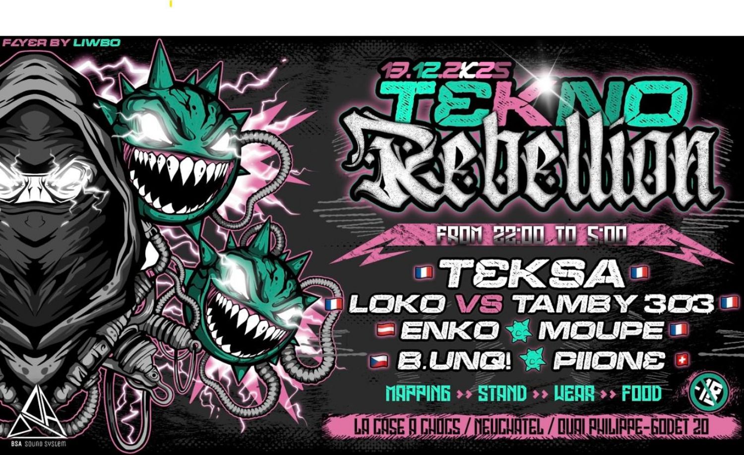 Le 13 décembre 2025, La Case à Chocs (Neuchâtel) vibrera à nouveau au rythme de la TEKNO REBELLION.