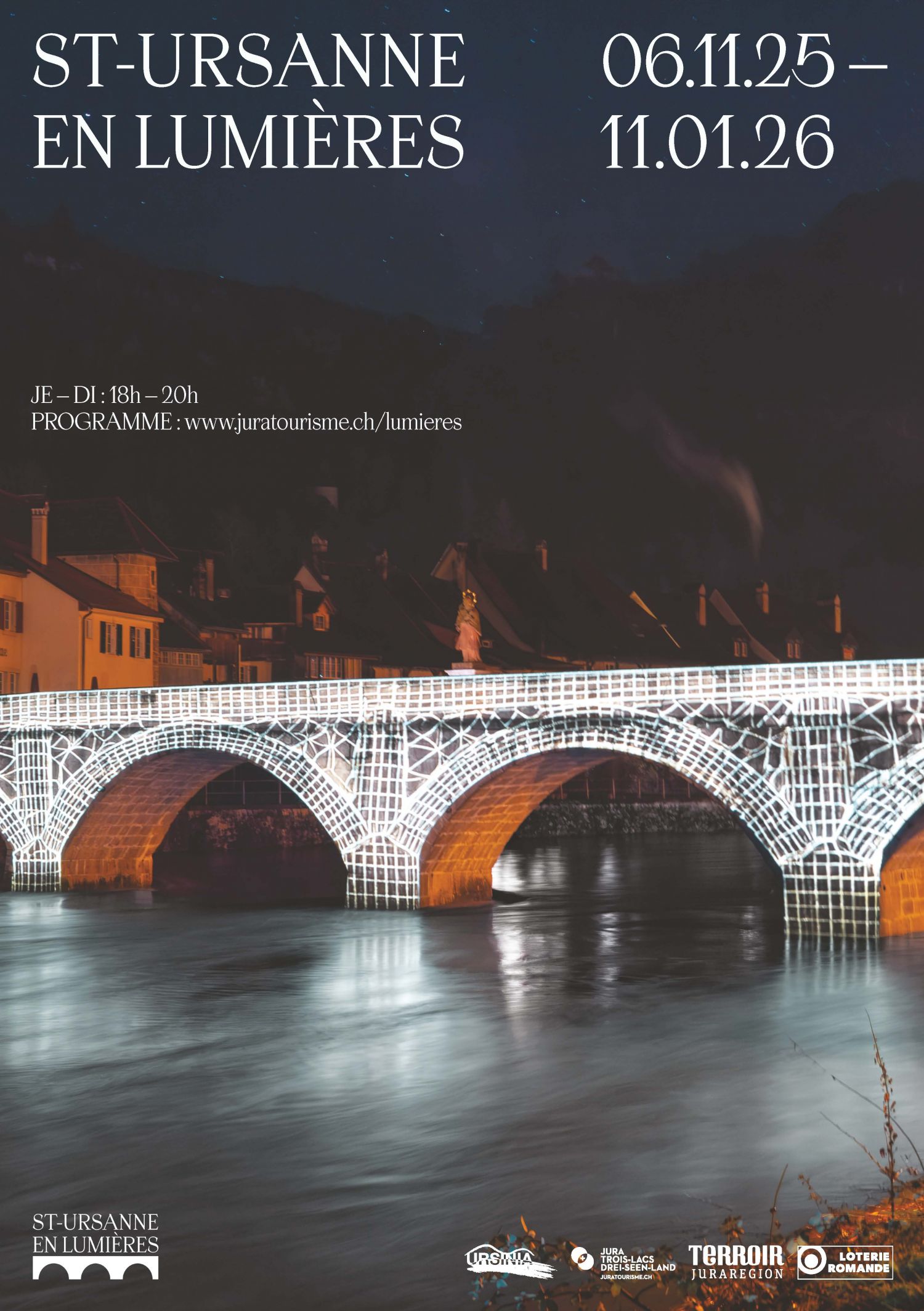 Découvrez St-Ursanne en lumières, un événement magique qui illuminera la cité médiévale du 6 novembre 2025 au 11 janvier 2026.