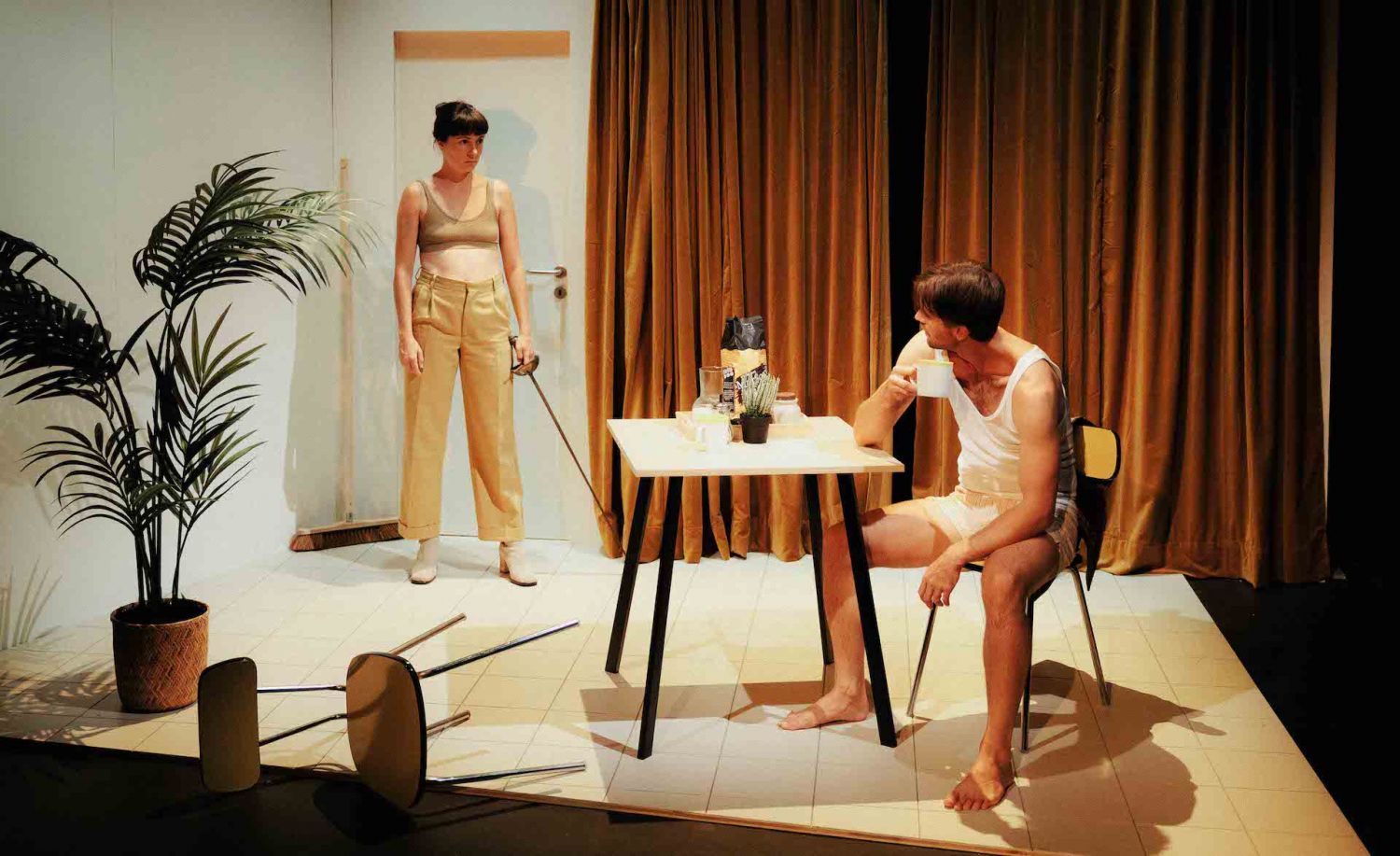 Sur scène deux acteur·ices vont rejouer des scènes d'amour tirées de leur bagage théâtral et personnel en y ajoutant leurs pensées d'aujourd'hui emplies de peurs, de doutes et de projections. Il et elle, Arnaud et Lisa, mais aussi Rodrigue et Chimène, Camille et Perdican, Adam et Eve sont dans un café, un restaurant et se rencontrent pour la première fois. A ce moment-là tout est encore possible.