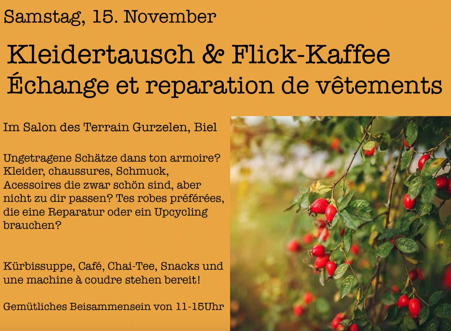 Kürbissuppe, Café, Chai-Tee, Snacks und une machine à coudre stehen bereit! Gemütliches Beisammensein von 11-15Uhr im Salon Gurzelen.