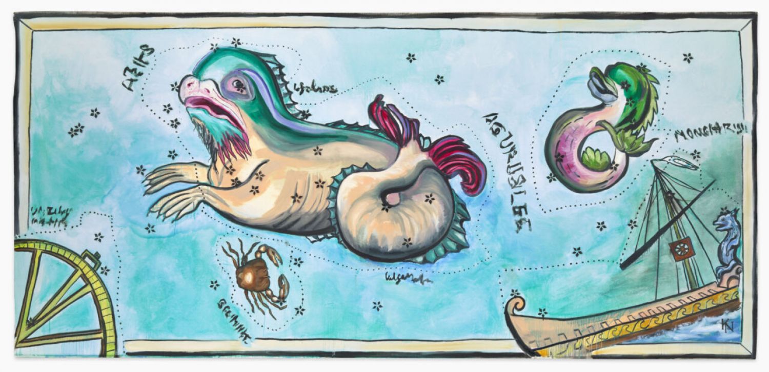 Klodin Erb, Seelöwin schützend über Krebs, Delphin flankiert, 2025 ©️ Courtesy of the artist.