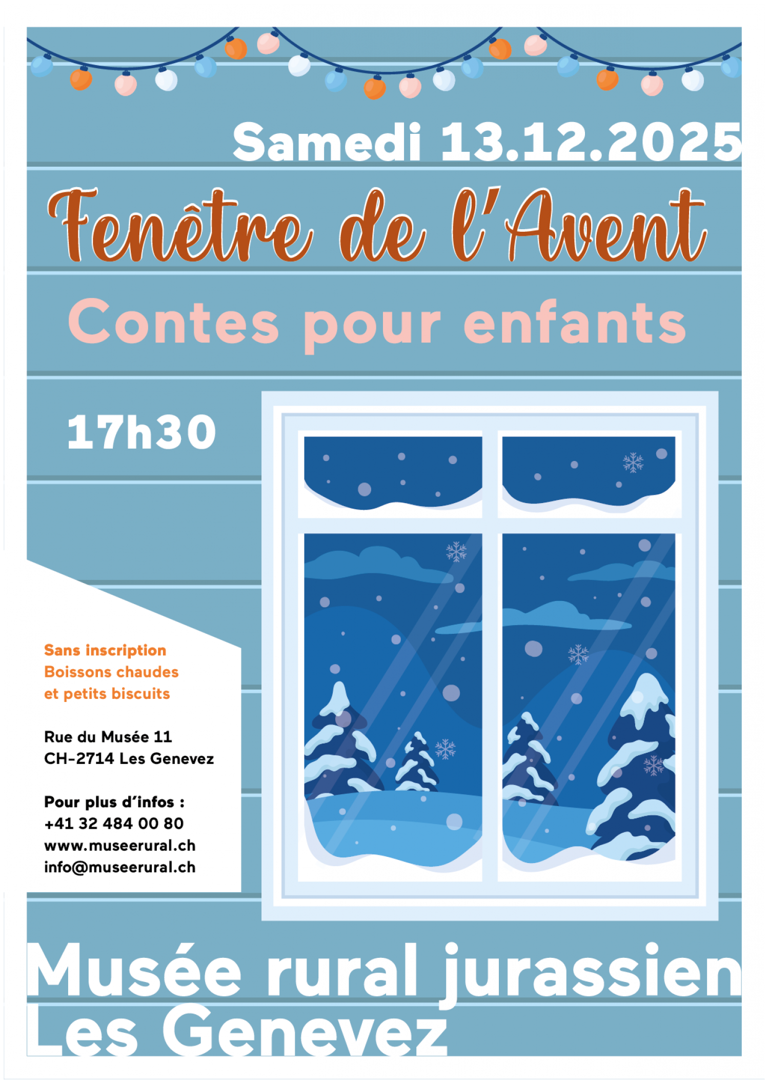 La Fenêtre de l’Avent : Le samedi 13 décembre 2025 à 17h30 venez partager en famille un moment convivial au Musée rural jurassien des Genevez !