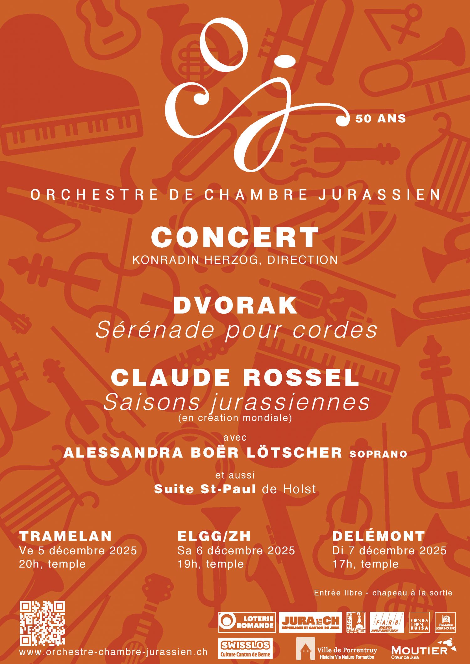 Il rejouera la composition commandée à Claude Rossel, déjà donnée au printemps à Porrentruy et Moutier, intitulée "Saisons Jurassienne", une oeuvre inédite, écrite sur des poèmes de Bernard Chapuis, Hughes Richard et Werner Renfer. La soprano Alessandra Boër Lötscher donnera voix à ces textes empreints de terroir et d'émotion. La suite St-Paul viendra enrichir la soirée d'une touche orchestrale raffinée.