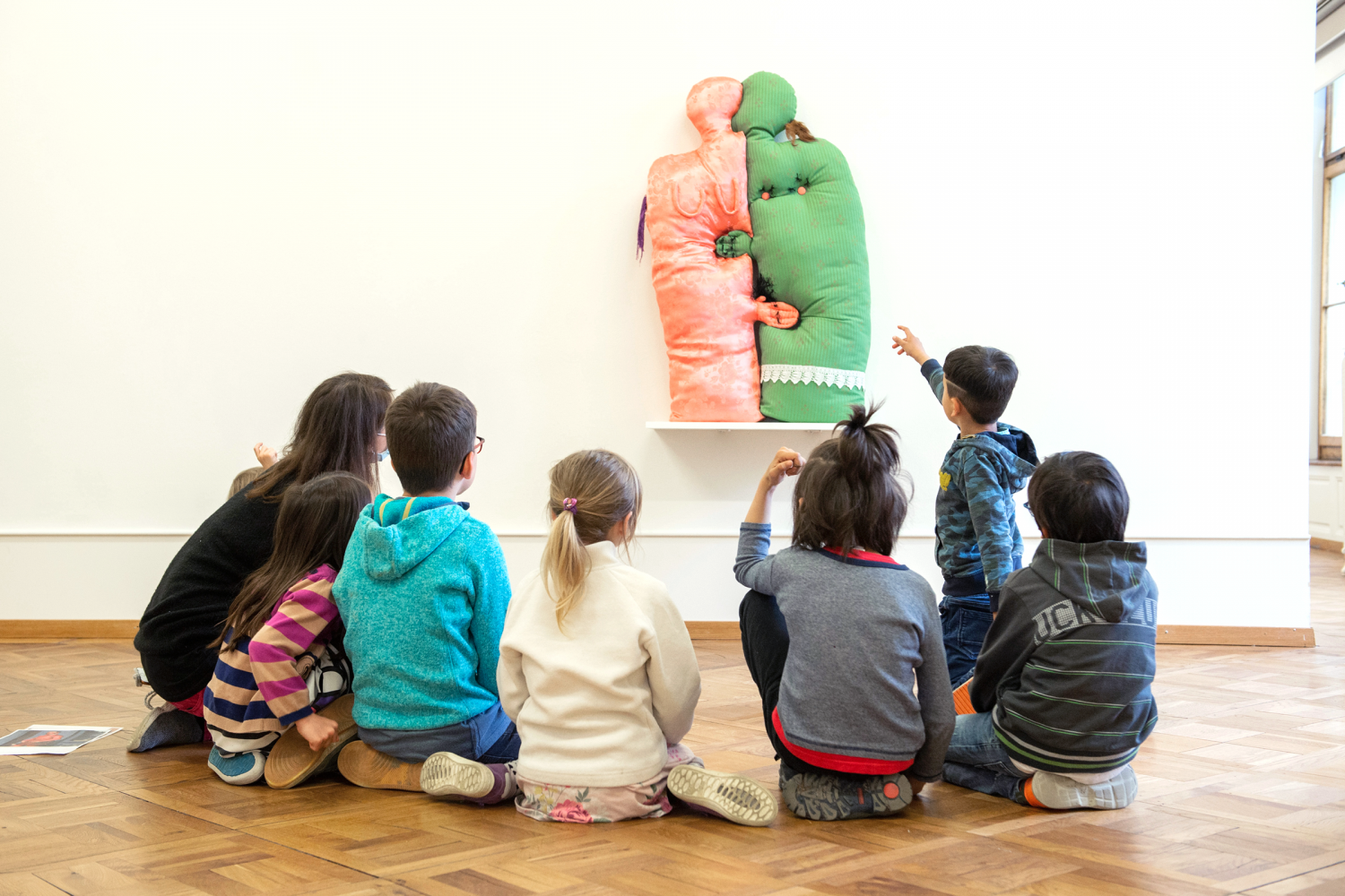 Pendant que les adultes écoutent les discours, les petit·s visiteur·euses partent à la découverte des expositions. Ensuite, elles·ils passent un moment créatif dans l’atelier.