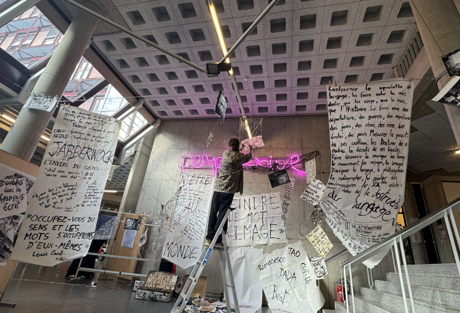 Les mots redeviennent image… le langage est mouvement… Un carnet de note géant. Après une première performance sous cette forme à l’Université de Lausanne dans le cadre des journées d’études « Troubles dans le français écrit », Dejan Gacond propose d’installer son éphémère Kaleidoscope of nothingness dans la salle de lecture de la Bibliothèque de la Ville, tout en digressant à voix haute sur l’histoire et les influences de ce projet. Il rythmera sa présentation par des moments de peinture en live, de spoken word et fera jaillir des voix mythiques de la littérature et de la philosophie. L’installation sera suivie d’une performance de spoken word par la poétesse new-yorkaise Lydia Lunch.