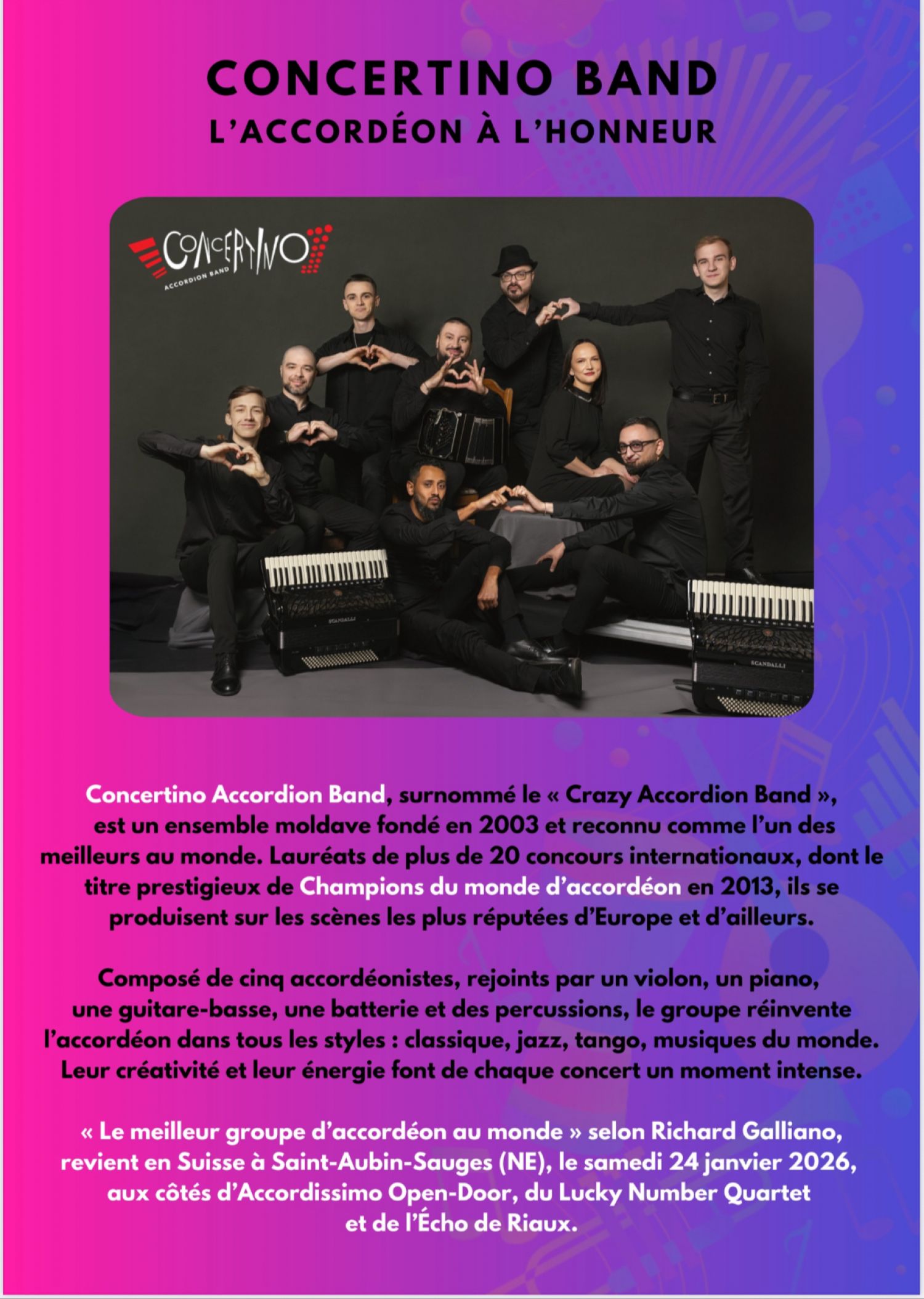 20:00 Concert des diverses formations dont CONCERTINO ACCORDION BAND - Moldavie