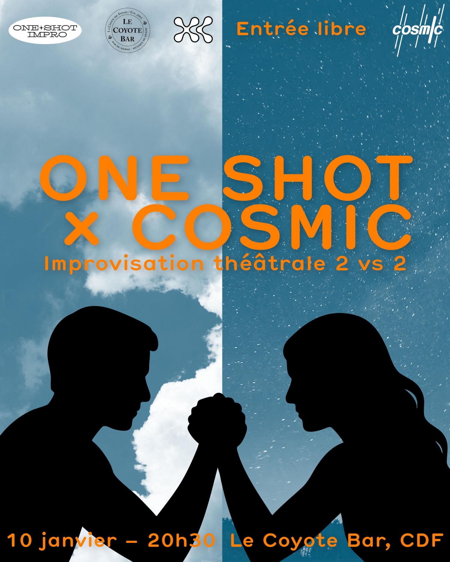 Soirée Impro 2 contre 2 avec One Shot Impro , ça va envoyer de la vanne et du rire !