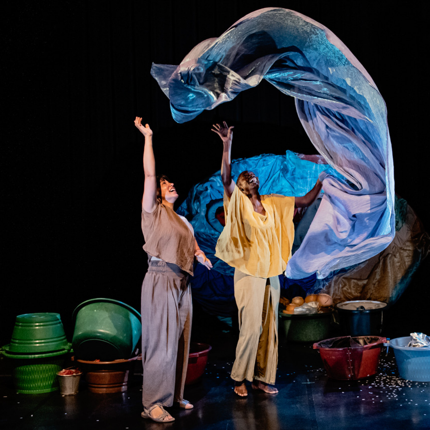 Texte, mise en scène et jeu Mamby Mawine et Hélène Ducharme Composition musicale Dramane Dembélé Musicien Lasso Sanou Marionnettes et accessoires Jean Cummings et Claude Rodrigue Personnage terre et eau Alessandro Fanni Costumes Valentina Sartori Lumière Jérôme Bérubé Conseillère dramaturgique Jennifer Tremblay Participation à la création Koffi Mens, Isabelle Chrétien, Claudine Rivest