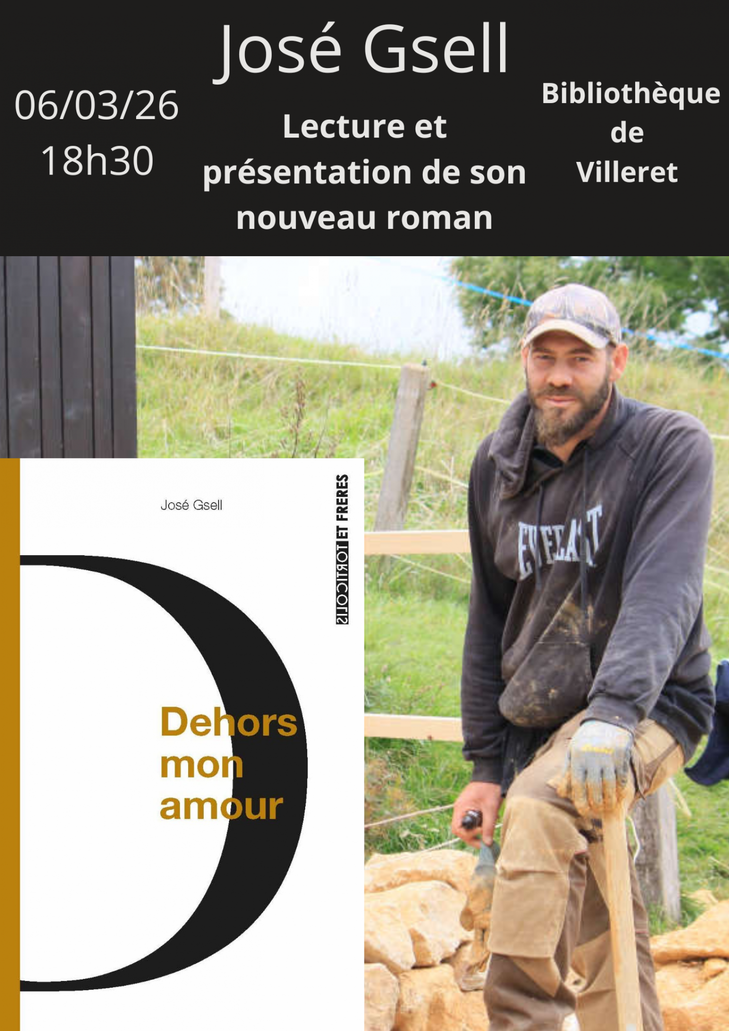 L'écrivain biennois José Gsell nous fait le plaisir de venir présenter son nouveau roman intitulé Dehors mon amour, à l'occasion de cette lecture en public.
