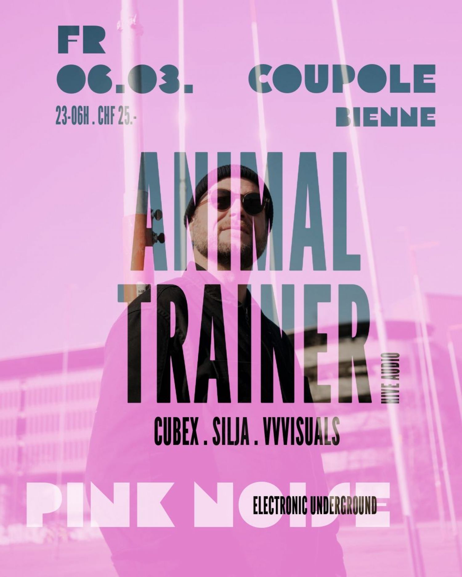 Pink Noise presents ANIMAL TRAINER (Hive Audio), CUBEX, SILJA & Live VVVisuals. Real Rave. No compromise. 23h till late. Come early and stay late.