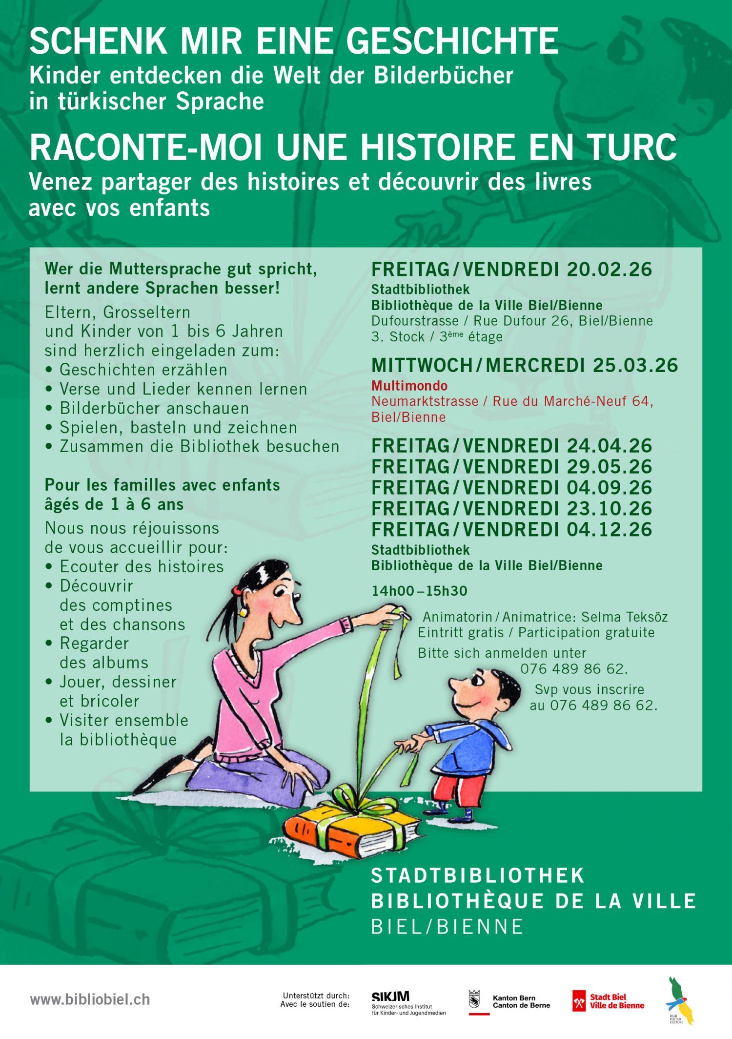 Venez partager des histoires et découvrir des livres avec vos enfants en compagnie de Selma Teksöz.