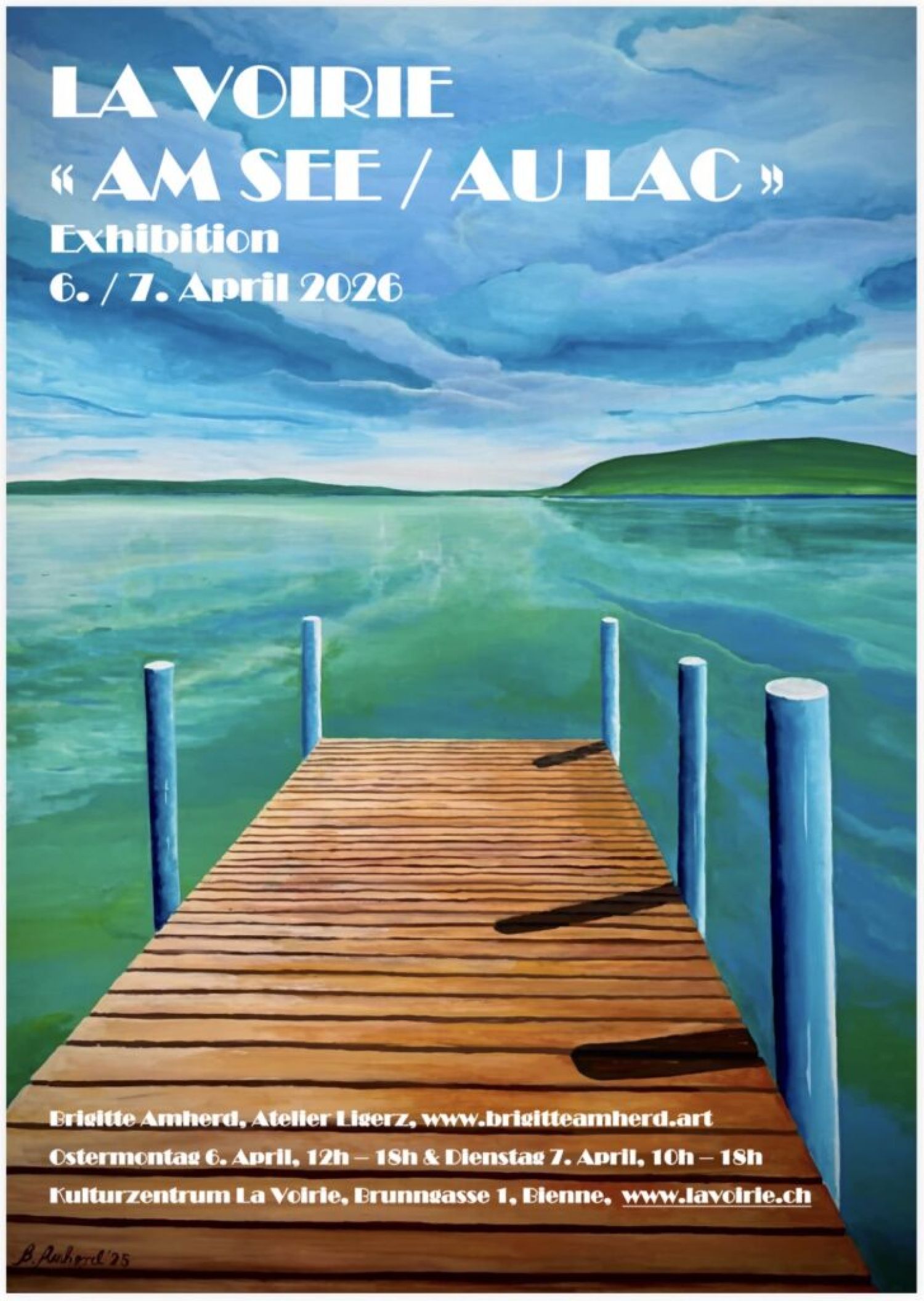La série « Am See / Au Lac » représente les paysages du lac de Bienne, dans et autour de la commune de Ligerz. Lors de ses promenades, Brigitte Amherd observe et ressent le vent, les nuages et les vagues, et intériorise ces impressions sensorielles.