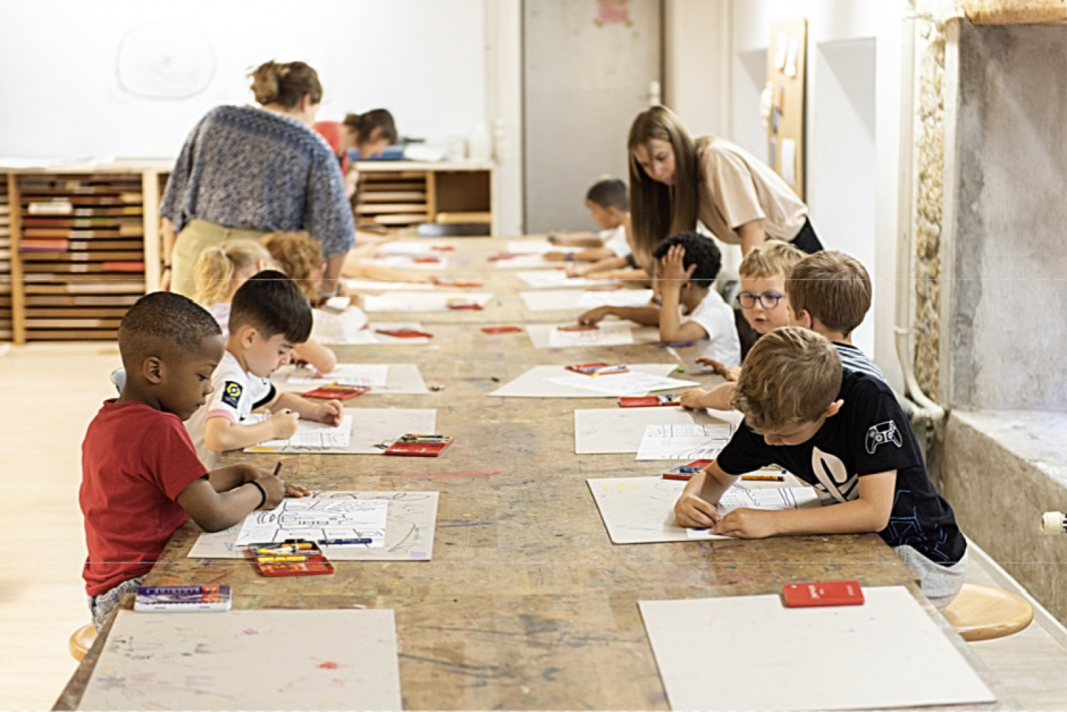 Zweisprachige Workshops für 5- bis 11-Jährige. Anzahl Teilnehmende beschränkt, Anmeldung empfohlen bis jeweils am Freitagmorgen zuvor. Zusammenarbeit mit dem NMB Neues Museum Biel.