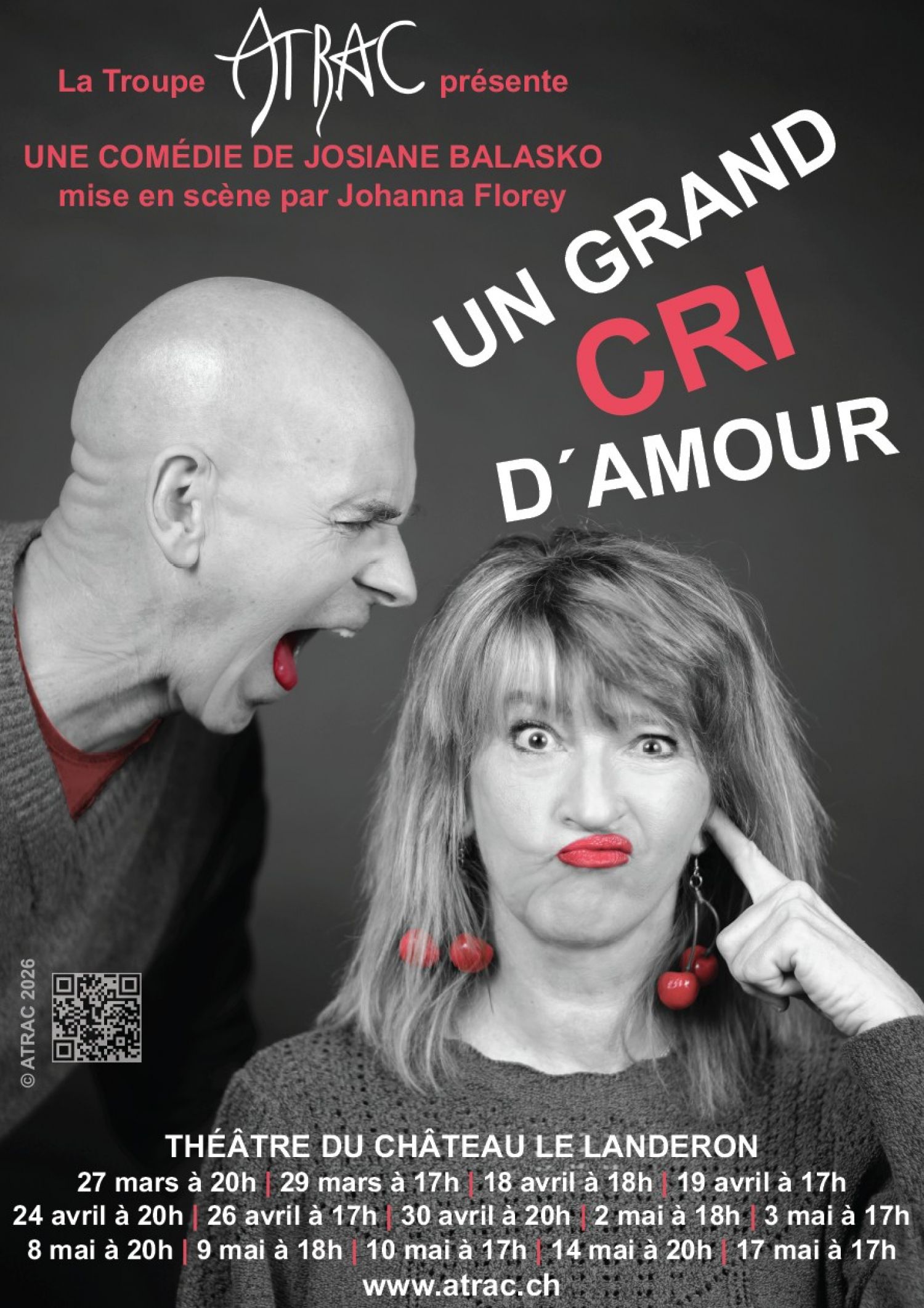 La Troupe ATRAC est ravie de vous accueillir dans sa magnifique salle entièrement rénovée pour débuter sa saison 2026 avec une comédie grandiose de Josiane BALASKO, mise en scène par Johanna Florey, au Théâtre du Château, au Landeron, du 27 mars au 17 mai 2026.
