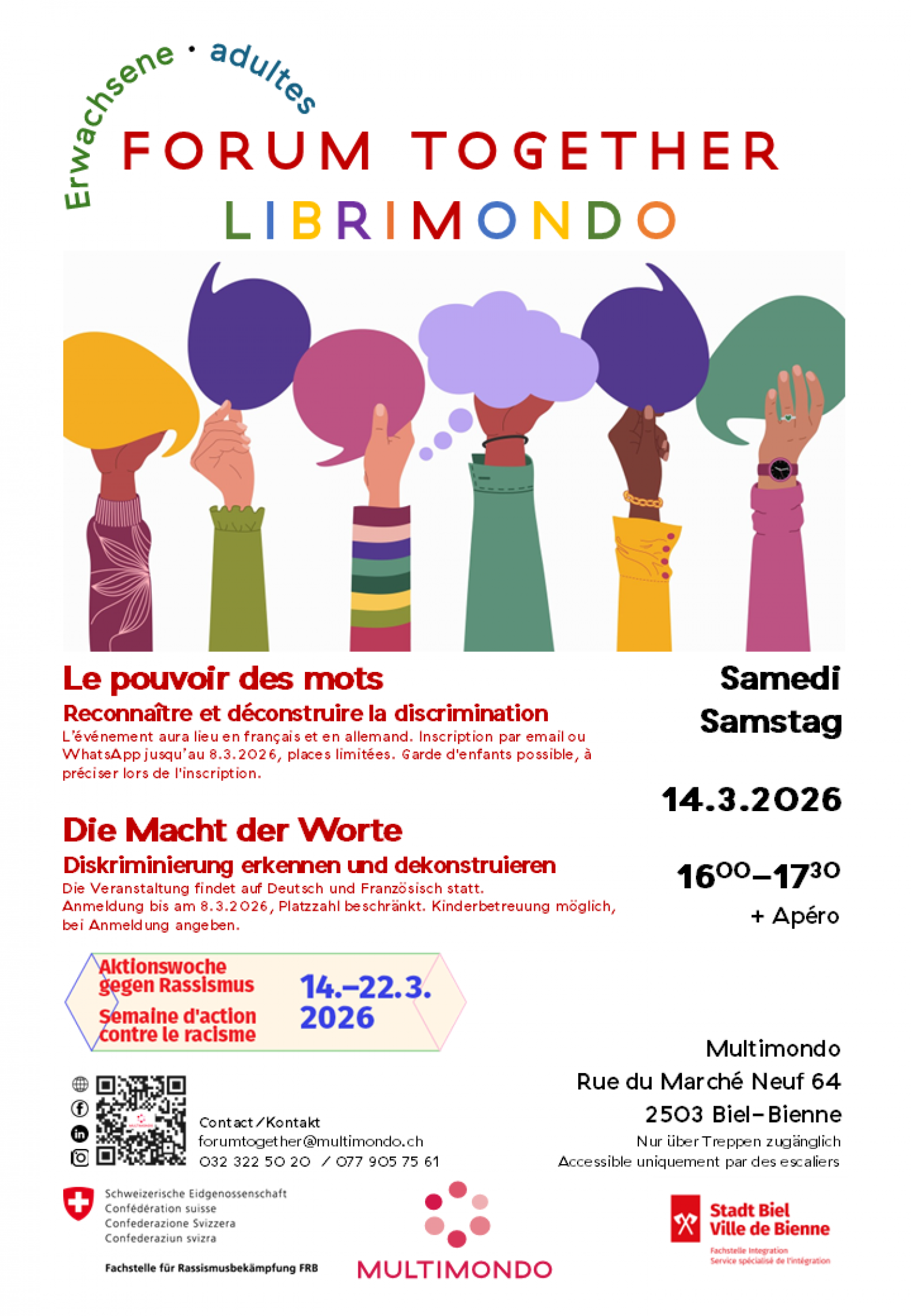 Lieu: MULTIMONDO, Neumarktstrasse 64, 2503 Biel/Bienne