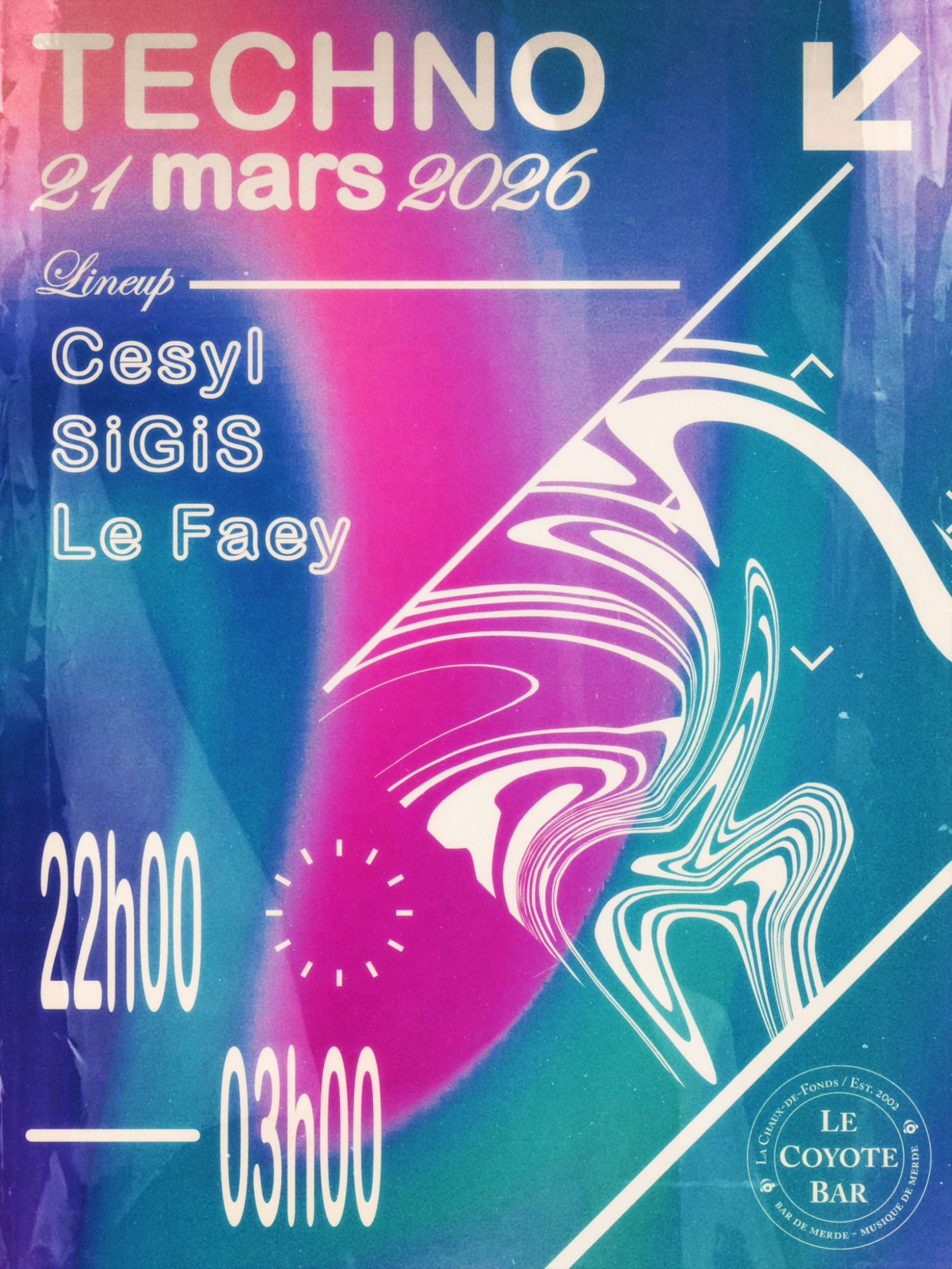 De 22h à 3h, prépare-toi à une montée d’énergie entre Techno puissante et rythmes rapides.