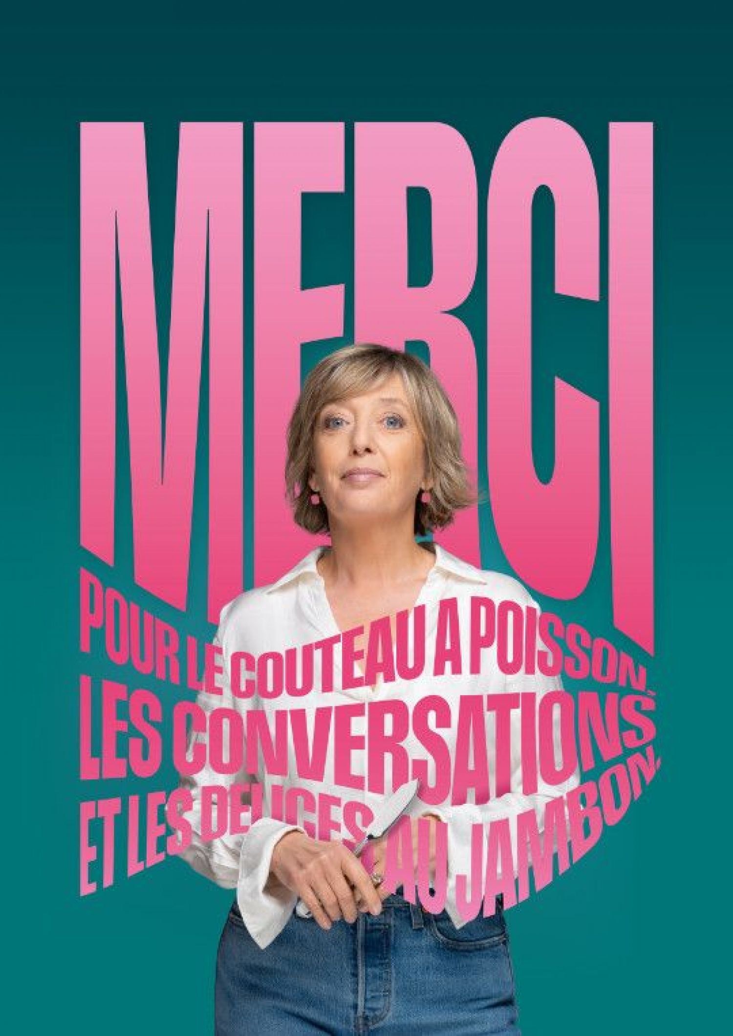 Dans le cadre de sa saison 2026-2027, le Théâtre de Colombier accueil Brigitte Rosset avec son seule en scène Merci ! Pour le couteau à poisson, les conversations et les délices au jambon.