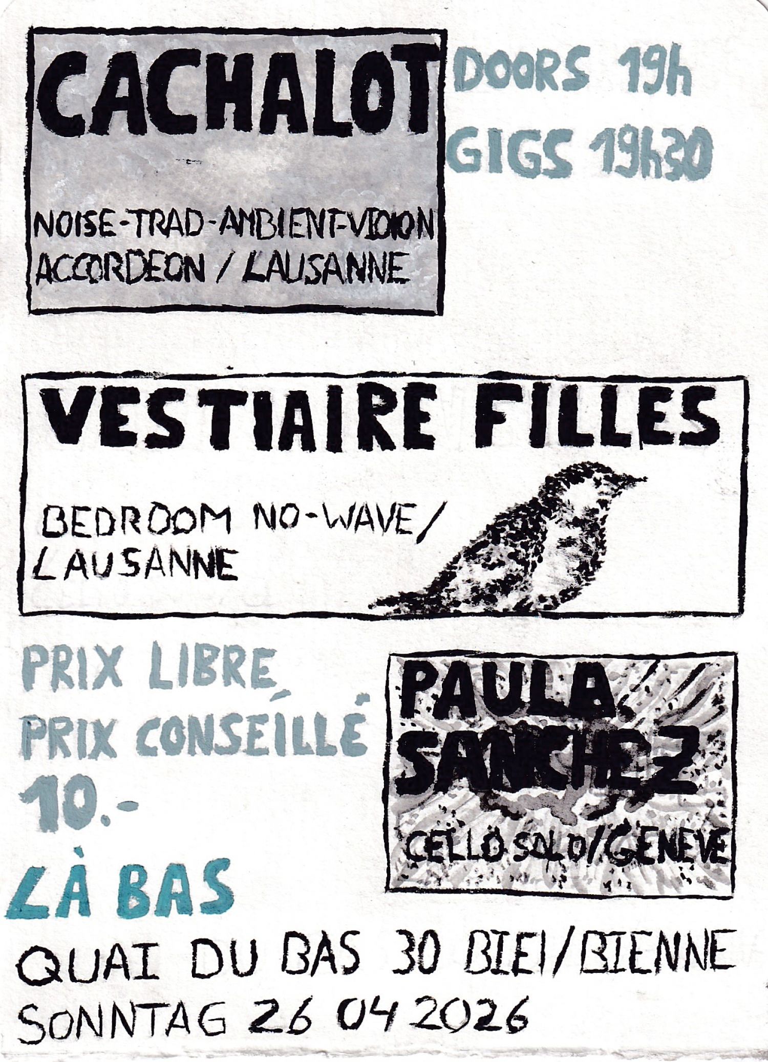 Avec une basse une guitare un laptop crachotant et 2-3 outils vestiaire filles font des bêtises qui font brrr frrrouch crac et qui sentent la terre humide le soir.