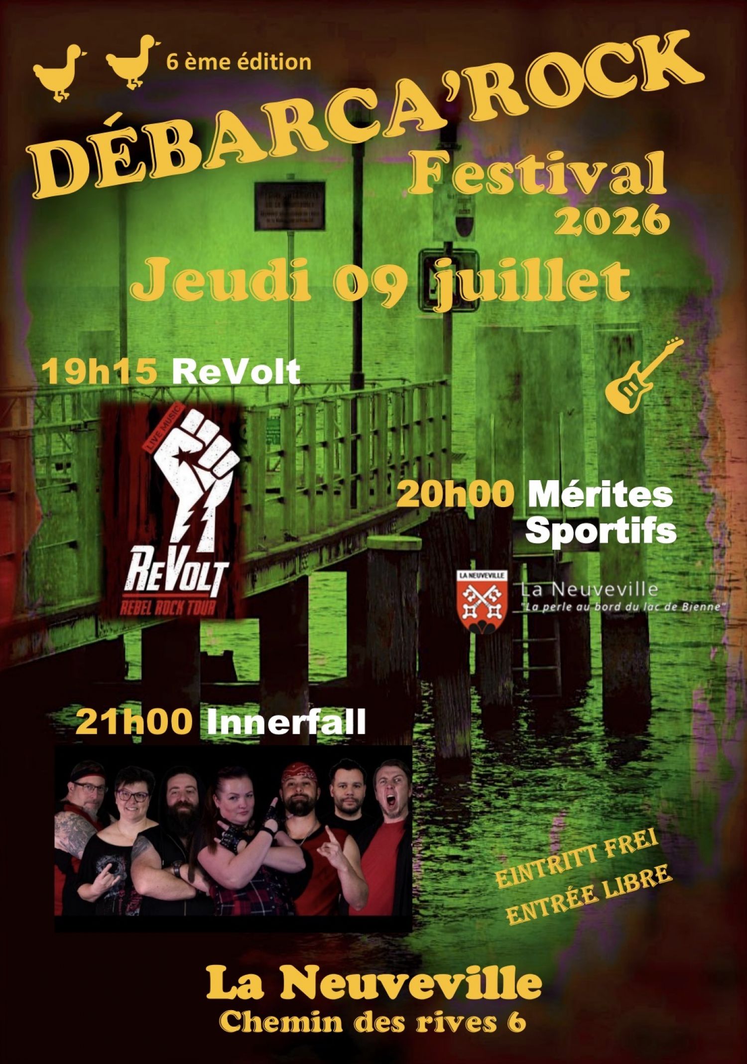Le Débarca'Rock festival revient pour sa 6ème édition les 09/10/11 et juillet 2026 avec comme toujours une programmation absolument "ROCK" au bord du lac de Bienne à la Neuveville !