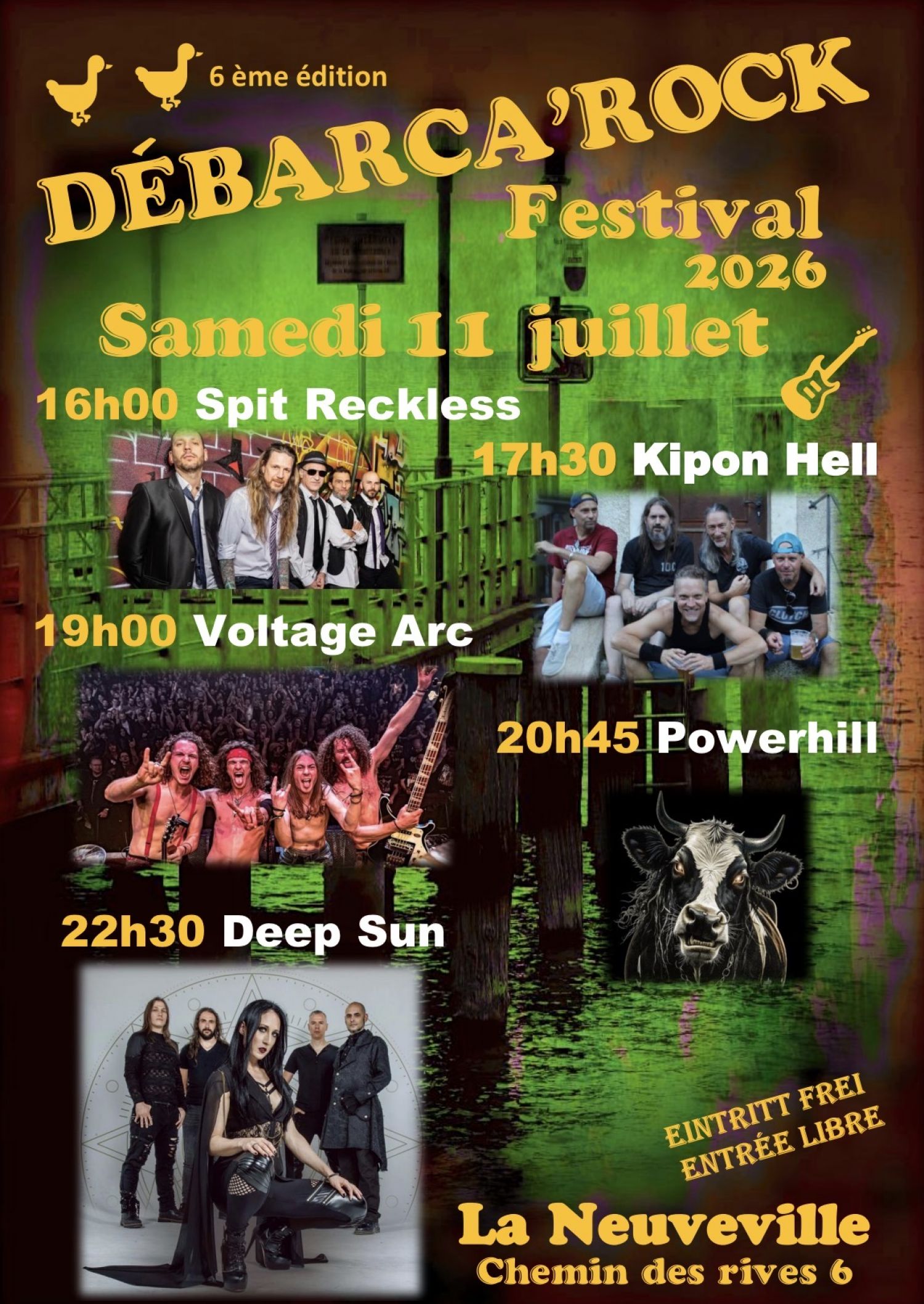 Le Débarca'Rock festival revient pour sa 6ème édition les 09/10/11 et juillet 2026 avec comme toujours une programmation absolument "ROCK" au bord du lac de Bienne à la Neuveville !