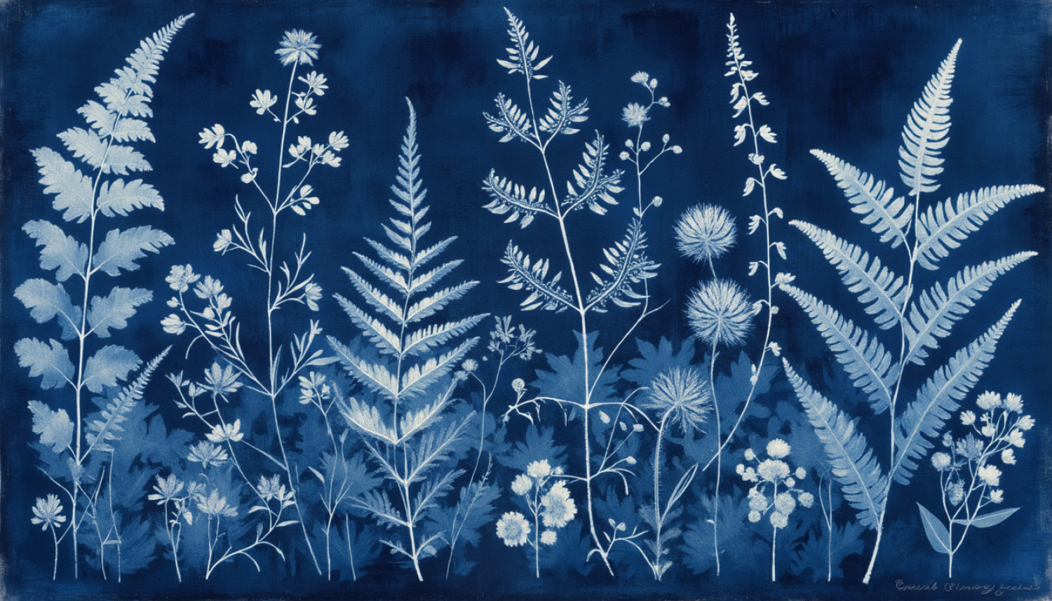Le cyanotype est une technique de photographie ancienne qui associe l’eau, le soleil et le végétal.