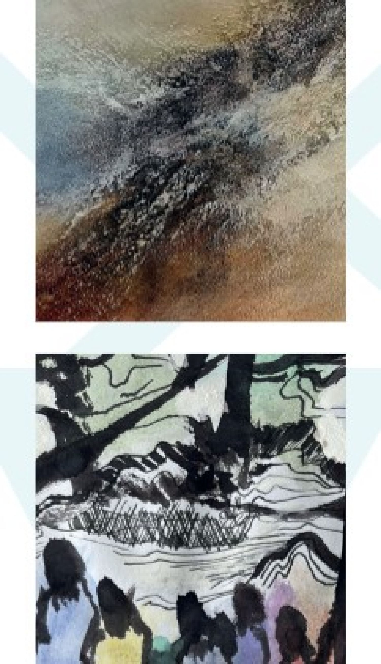 sur les illustrations de la bande dessinée qu’elle venait d’achever. Très vite, les échanges dépassent le cadre de la BD : Alain découvre alors les tableaux que Christelle réalise en parallèle, et y reconnaît une sensibilité proche de la sienne. Tous deux prennent conscience de ce qui les relie profondément : une attention particulière portée à la nature, à ses mouvements, à ses rythmes et à ses forces élémentaires. De cette évidence est née l’envie de faire dialoguer leurs univers au sein d’une exposition commune. Peinture, abstraction, figuration, narration graphique : leurs œuvres se répondent et invitent le regard à une contemplation attentive du vivant, entre puissance et fragilité, énergie et silence.