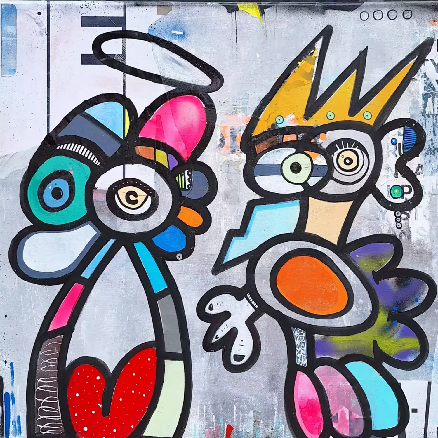 Les toiles de Julien Schott retranscrivent des "pieces of wall", des parts de rue comme si elles avaient été directement prise sur un mur. Son processus de travail est instinctif et impulsif. Ses créations se font naturellement dans la mesure où elles correspondent à ce qu'il aime et qu'il habite : les couleurs, la musique, les lettres et les formes dynamiques. La culture hip hop reste toujours en filigrane dans son travail. Julien Schott écoute énormément de musique lorsqu'il peint. Il utilise de la peinture acrylique, des bombes de peinture, du collage, des craies grasses ainsi que du béton et des marqueurs.