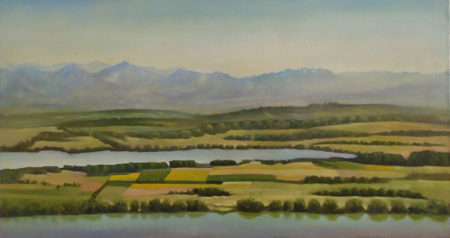 (C) Nicola Marcone, Terres du milieu, huile sur toile, 65 x 115 cm, 2025