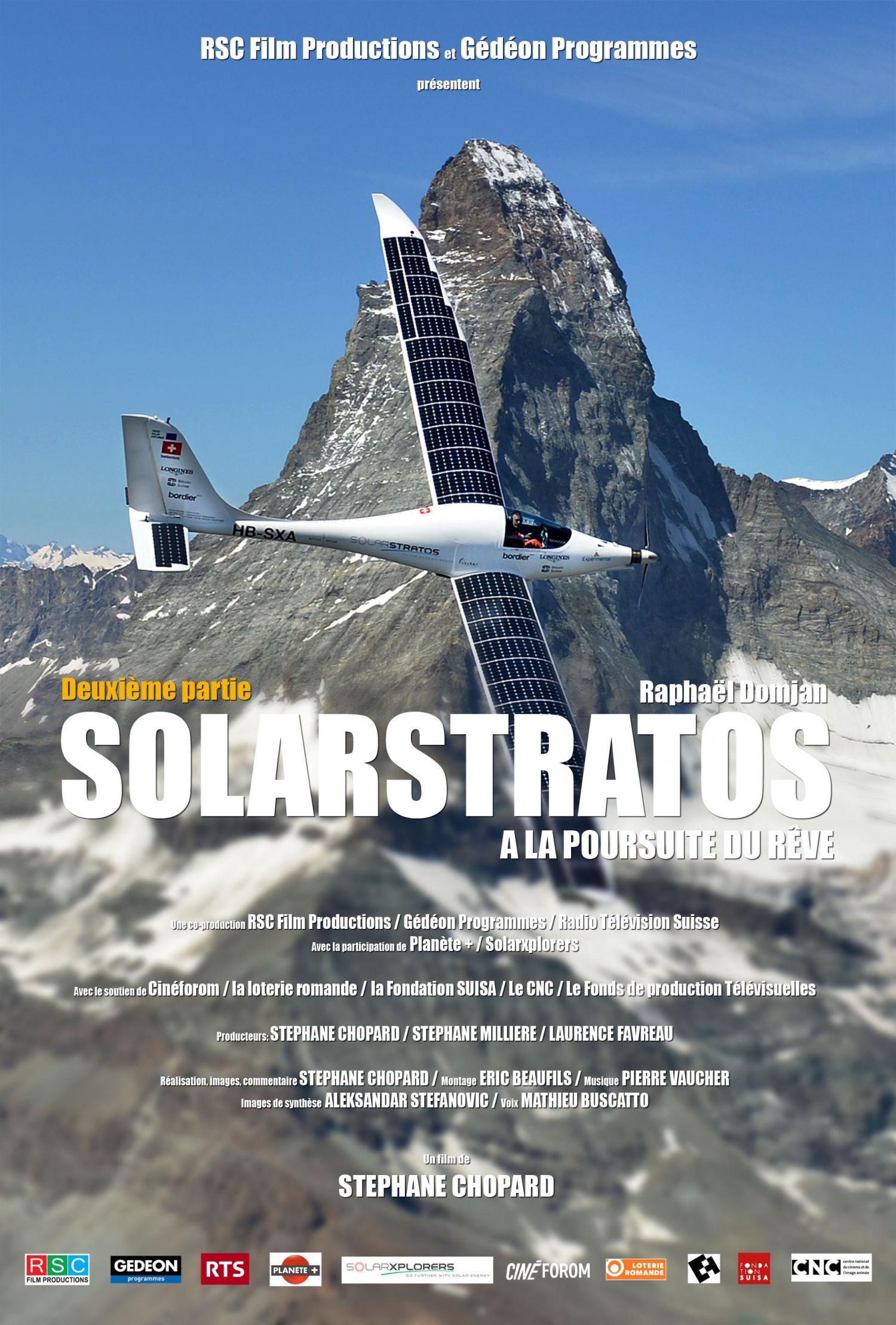 Le 12 août 2025, SolarStratos a réussi un vol record à plus de 9’500 mètres, faisant de HB-SXA l’avion solaire électrique habité le plus haut de l’histoire. Un film documentaire retrace les préparatifs et l’accomplissement de cet exploit, qui fait la magie des aventures humaines et technologiques. « À la poursuite du rêve », réalisé par Stéphane Chopard, sera diffusé par plusieurs chaînes de télévision. Co-produit par RSC Films Production, Gédéon Programmes et la RTS, avec la participation de Planète +, ce documentaire sera projeté lors d’une avant-première publique gratuite, grâce au soutien de Viteos, acteur de la transition énergétique :