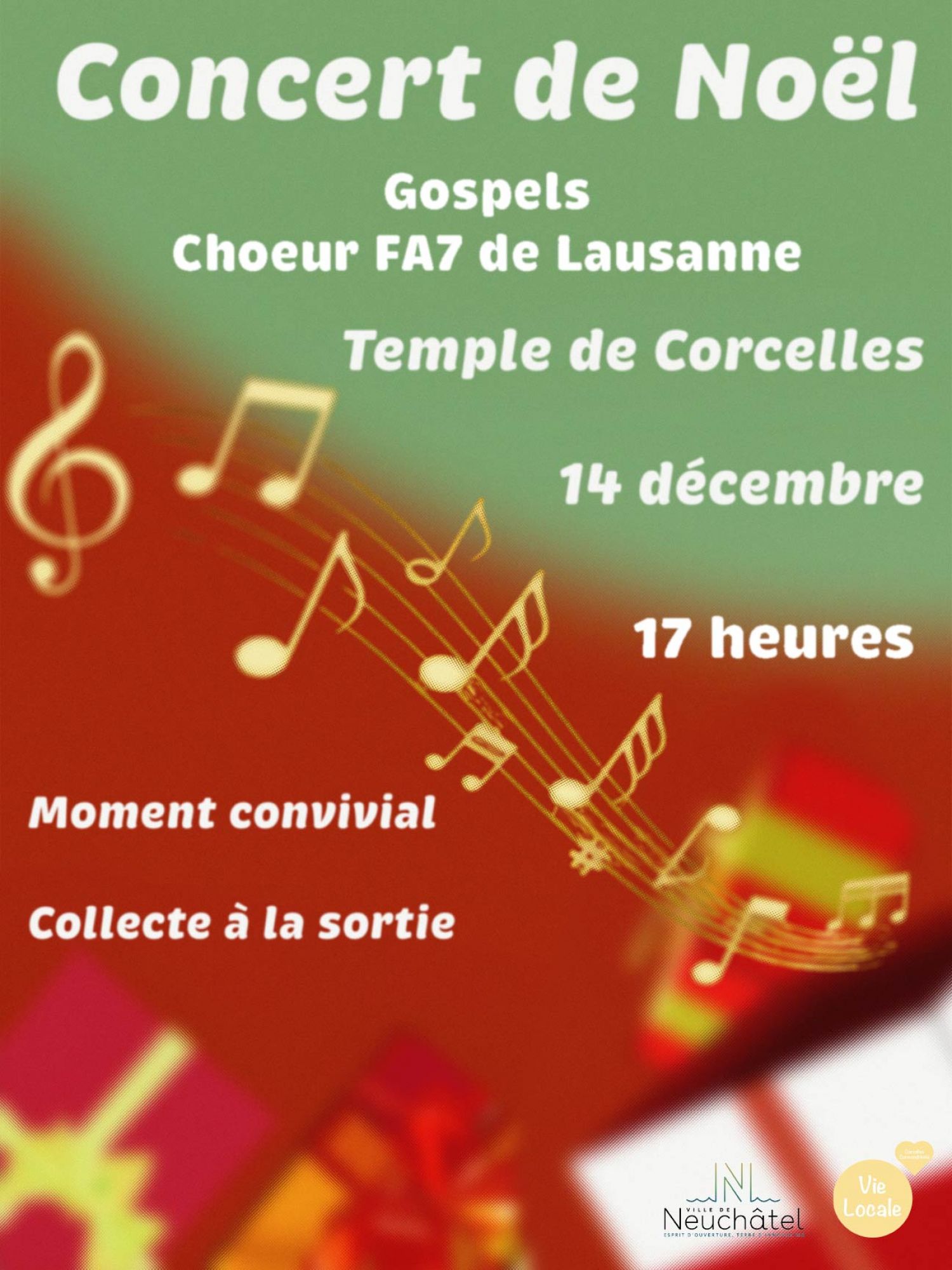 En cette période de stress des fêtes, la Commission Vie locale de Corcelles-Cormondrèche a invité le chœur FA7 de Lausanne à nous offrir un peu de joie et de sérénité grâce à ses chants Gospels.