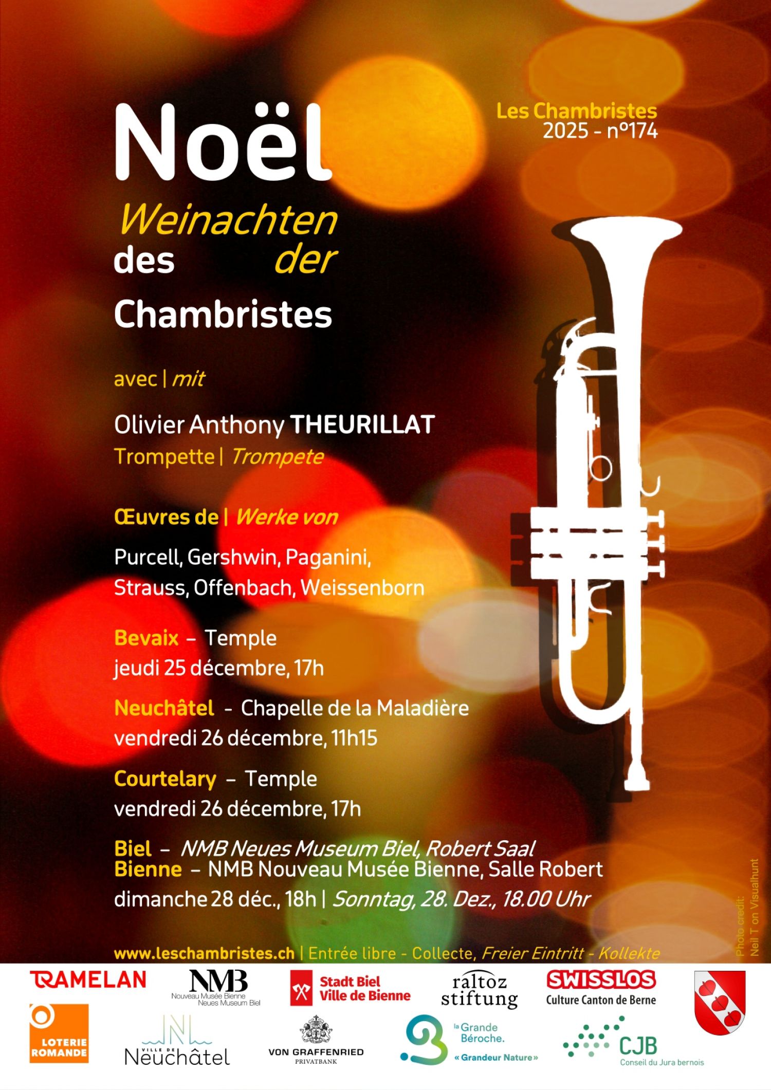 Venez fêter Noël, le Nouvel an et la musique avec Les Chambristes et le grand trompettiste Olivier Theurillat.
