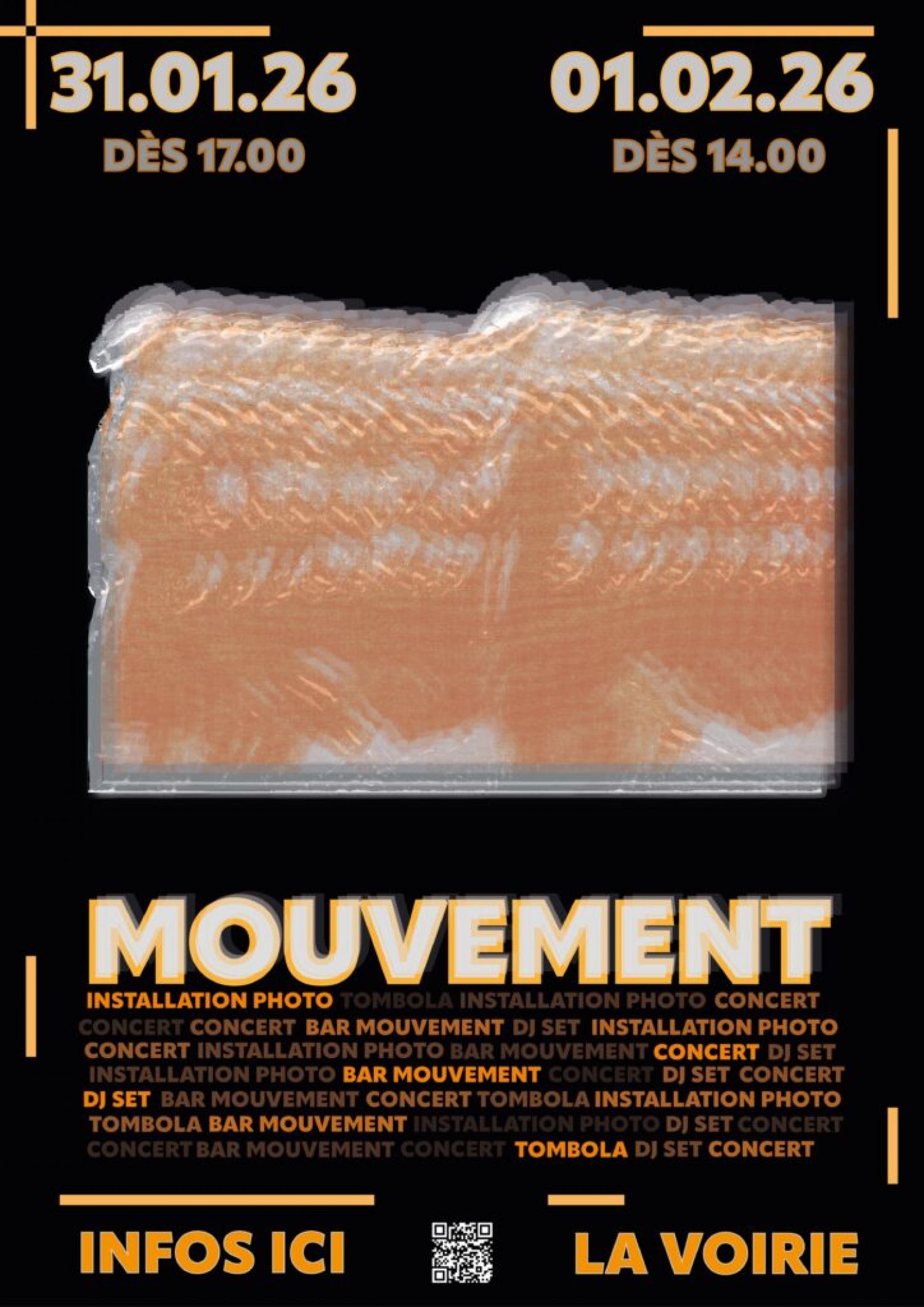 MOUVEMENT est un nouvel événement culturel interdisciplinaire qui réunit musique, danse, photographie, couture, performances et arts visuels. Il met en lumière de jeunes créatrices et créateurs biennois et crée un espace d’expression libre, accessible et vivant.