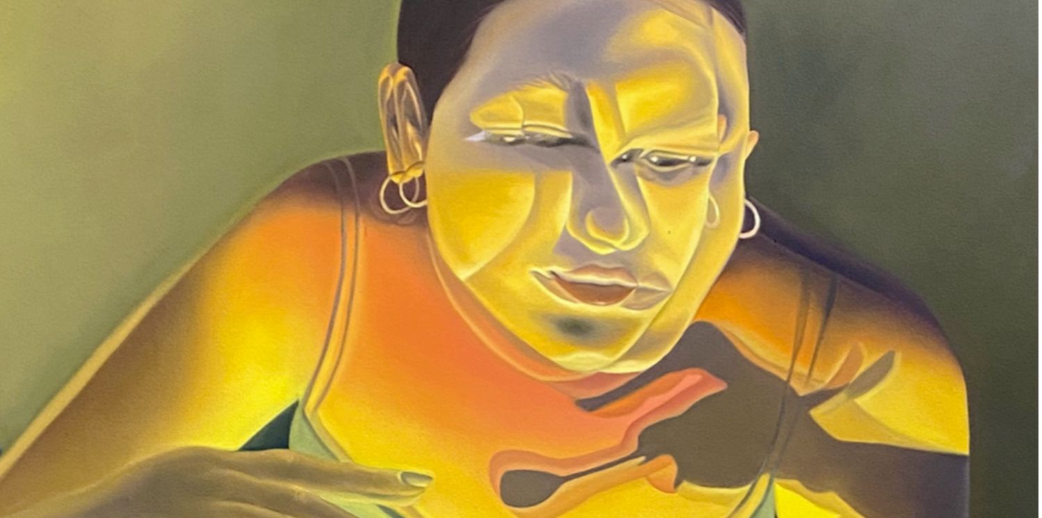 Pour cette exposition, l'artiste propose à travers une série de peintures, une lecture du maquillage étroitement liée au virtuel. Cette connexion lui permet de parler des corps en constante métamorphose. L'écran devient alors un espace de contemplation transcendant, comparable au miroir face auquel on se maquille mais aussi à celui qu’elle explore avec l’autoportrait : l’autoportrait comme reflet, comme surface de projection et de transformation du corps.