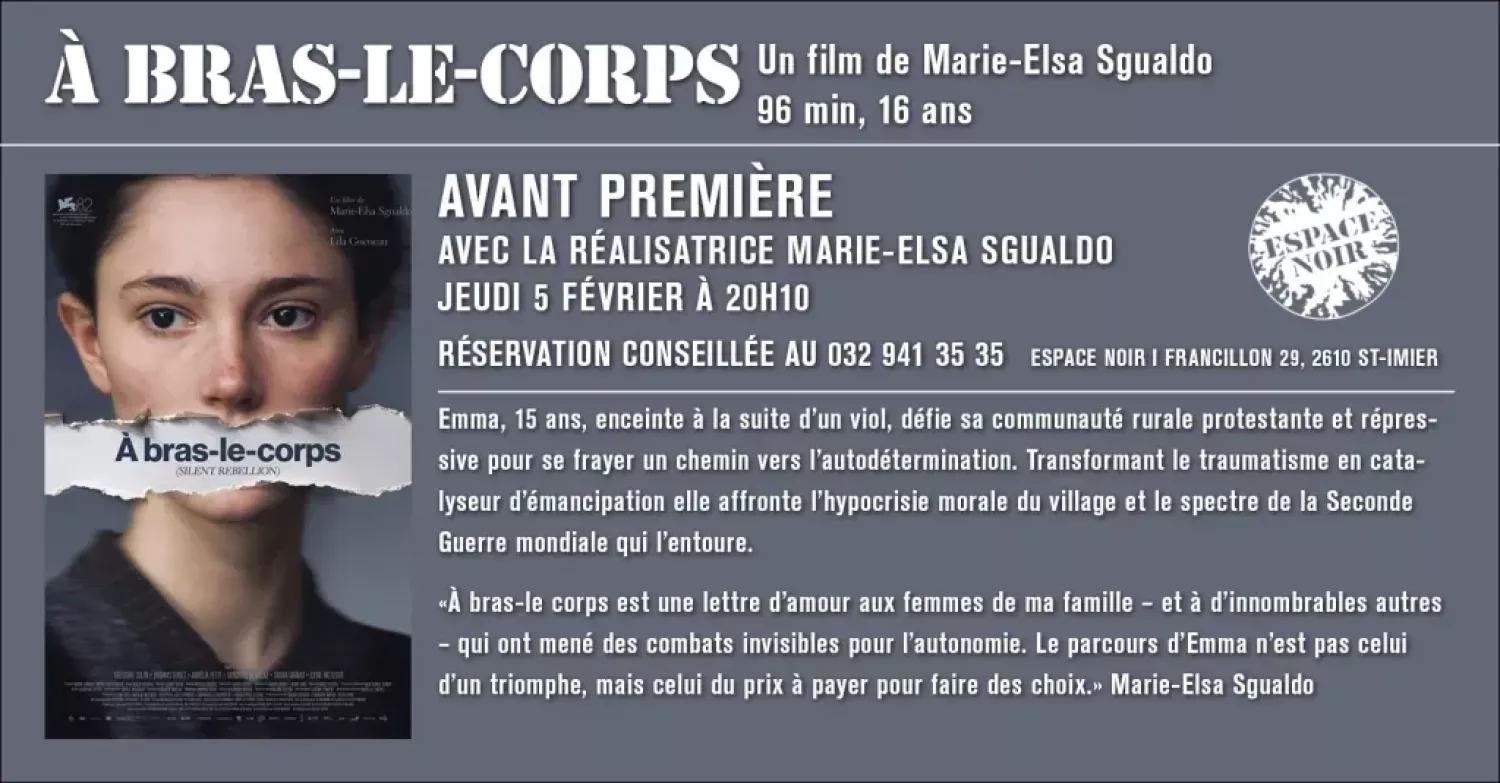 Espace noir à le plaisir d’accueillir en ses murs Marie-Elsa Sgualdo qui viendra présenter son film À bras-le-corps en avant première le Jeudi 5 février.
