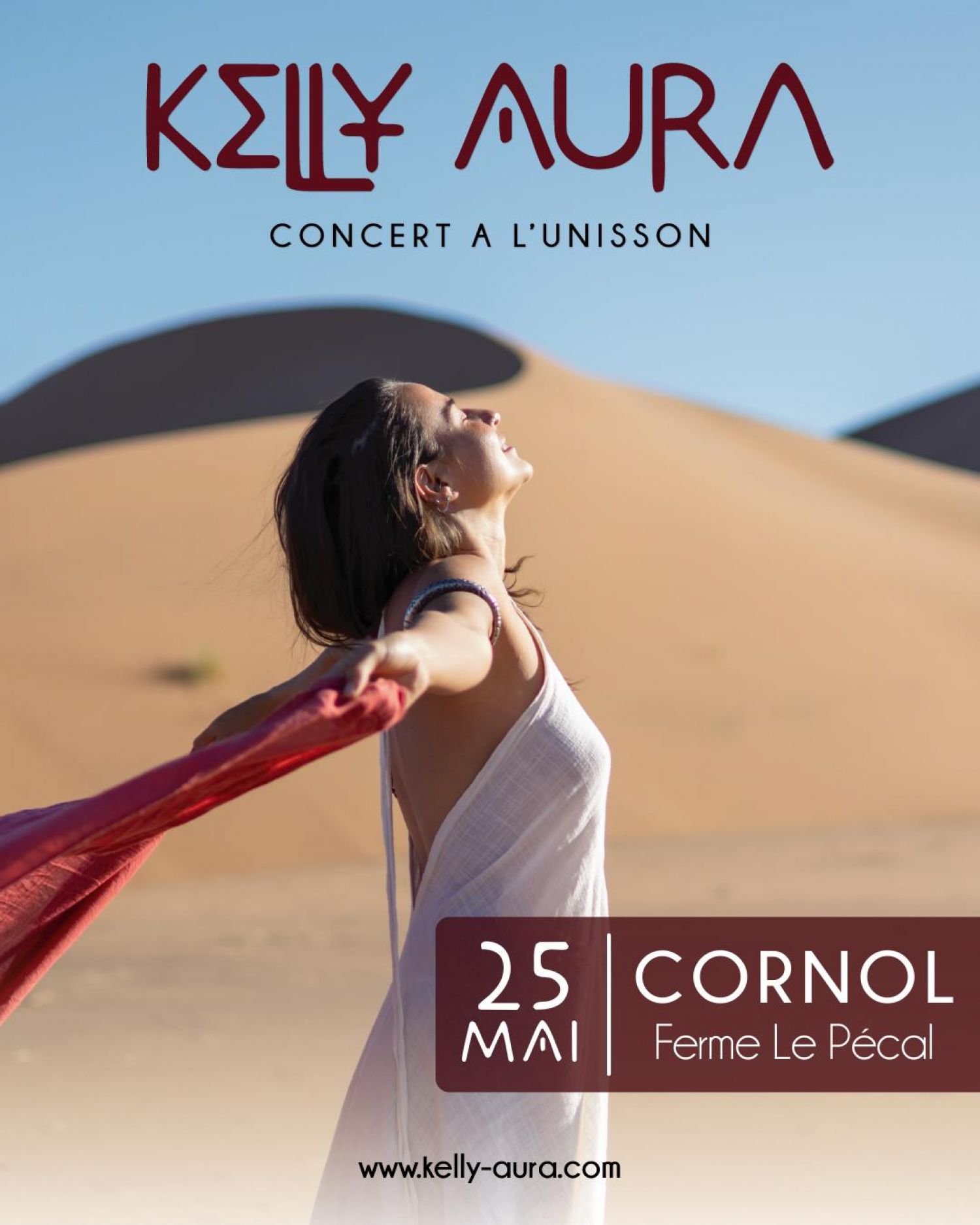 Kelly Aura, chanteuse et multi-instrumentiste, voyage à travers la musique et l'âme, élevant les vibrations de l’être. Depuis 2017, elle guide des cercles de chants médecine, des concerts à l’unisson, des ateliers de « Voice Activation »et des retraites holistiques, en France, à Ibiza, Majorque, au Maroc, en Suisse, Luxembourg, Belgique, Allemagne… Elle enseigne le yoga, la méditation en mouvement et le Tandava, des pratiques sacrées qui ouvrent les portes de la Présence et de l’extase intérieure. Artiste nomade, Kelly partage ses *Odes au Vivant*, au Divin, à l'Amour, à travers des albums et des singles disponibles sur toutes les plateformes de streaming depuis novembre 2022. À chaque rencontre, elle invite les âmes à s'élever ensemble, créant un instant suspendu où, ensemble, nous chantons le ciel sur la terre, dans nos corps, unifiés par le souffle et la vibration. Dans chaque note, elle sème la joie, l’amour et la lumière, invitant chacun à chanter, à vibrer, à aimer… tout simplement. En août 2025, elle donne naissance à son premier festival, le « Inner Voice Fest », en France, une célébration de l’unité, de la Grâce et de la Présence, un souffle commun porté par l’âme collective. Concert à l'unisson avec Kelly Aura Kelly Aura, alchimiste de la voix, vous invite à un voyage mystique au cœur de ses chansons. Lors de ce concert live, vous serez plongé dans une soirée hors du temps, un véritable voyage initiatique et festif au cœur du Soi. Cet événement unique est bien plus qu’un concert, c’est une expérience collective, un moment de communion où chaque âme est invitée à chanter et à danser. *À l'unisson*, nous chanterons cette symphonie de Vie, vibrerons ensemble et élèveront nos Voie-x "Dans la Lumière de l'Amour".