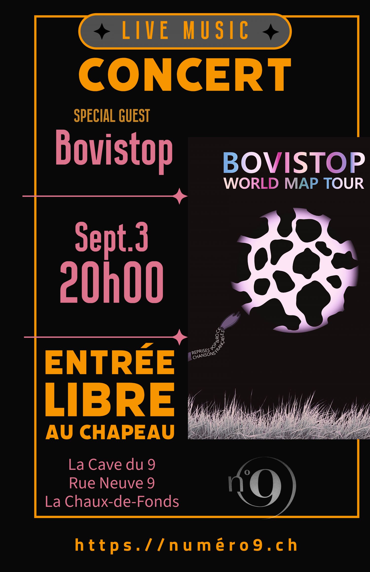 Bovistop, groupe pop-rock d'amateurs avertis, propose des arrangements inédits de titres du répertoire francophone des années 1980 à aujourd'hui.
